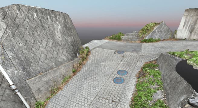 取得した画像を、写真測量用のSfMソフトウェアである『PIX4Dmatic』で解析することで、